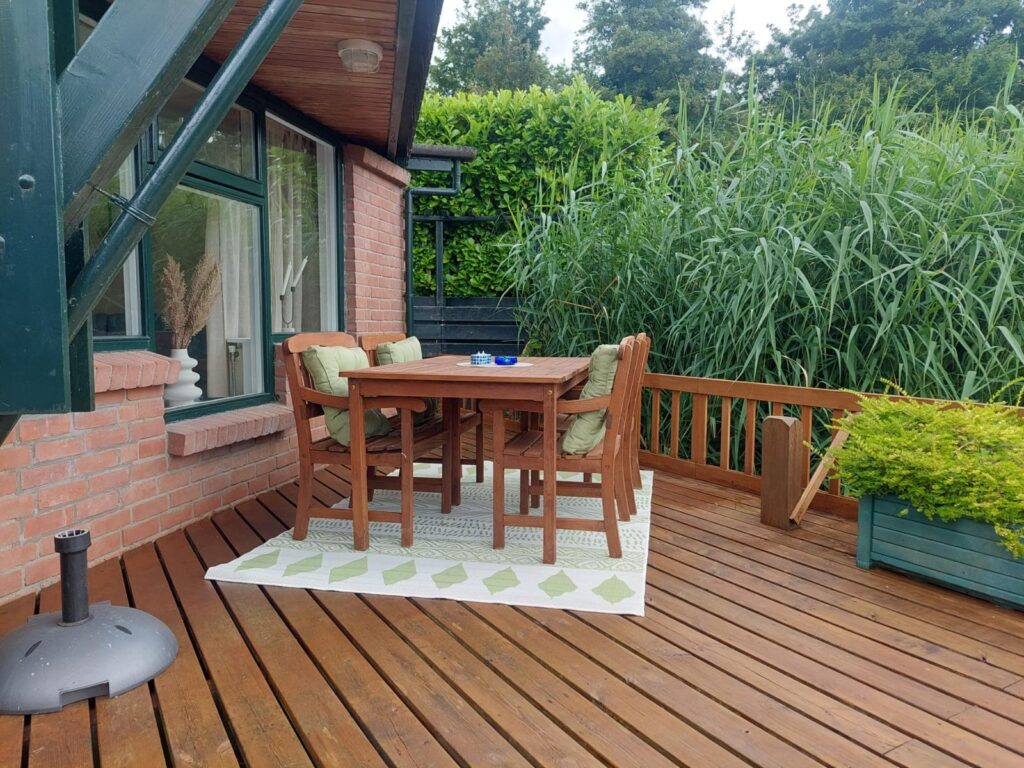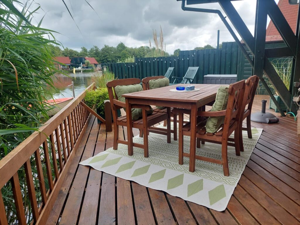 Das Ferienhaus hat ca. 65m², welche sich auf zwei Etagen verteilen. Zusätzlich haben wir eine schöne Terrasse direkt am See.
